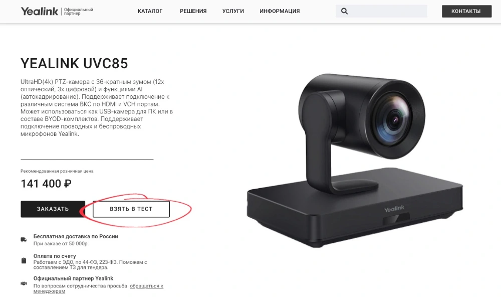 Перейдите на страницу интересующего вас оборудования, нажмите кнопку «Взять в тест» и заполните появившуюся форму.